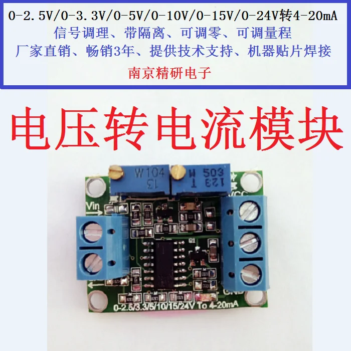 Description of Voltage to Current Module Signal Conversion and Conditioning 0-3.3v/5v/10v/15v to 4-20mA Transmitter